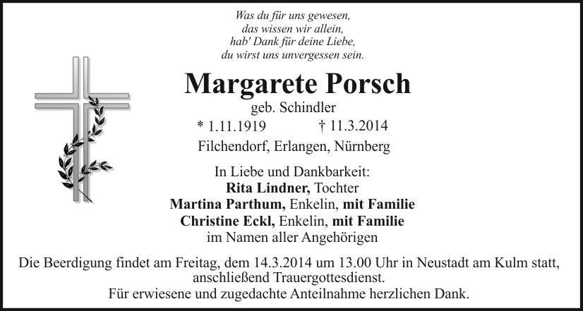 Die Beerdigung findet am Freitag, dem 14.3.2014 um 13.00 Uhr in Neustadt am Kulm statt, anschließend Trauergottesdienst.
