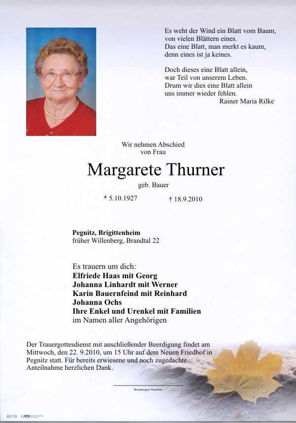 Die Beisetzung findet am Mittwoch, 22.09.2010 um 15:00 Uhr auf dem Friedhof Neuer Friedhof in Pegnitz statt.