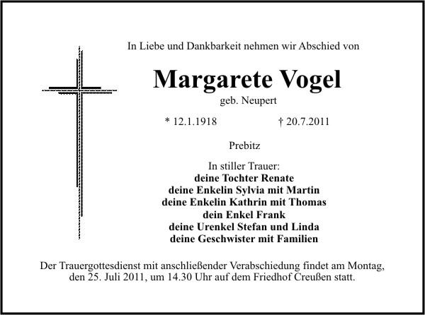 Die Beisetzung findet auf dem Friedhof in Friedhof in Creußen statt.