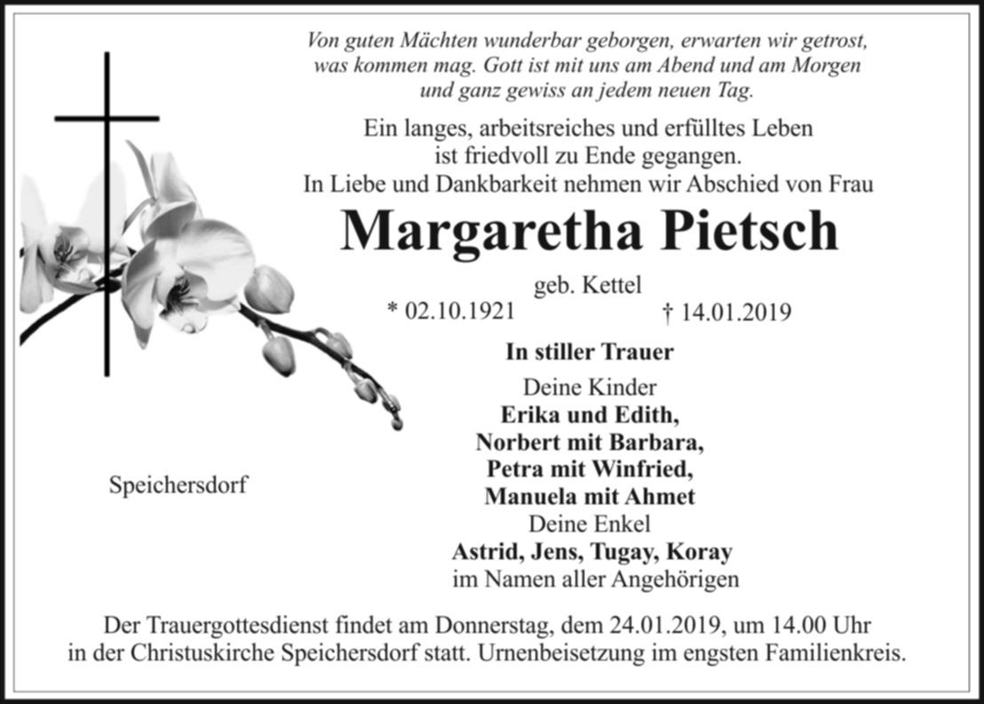 Der Trauergottesdienst findet am Donnerstag, dem 24.01.2019, um 14.00 Uhr