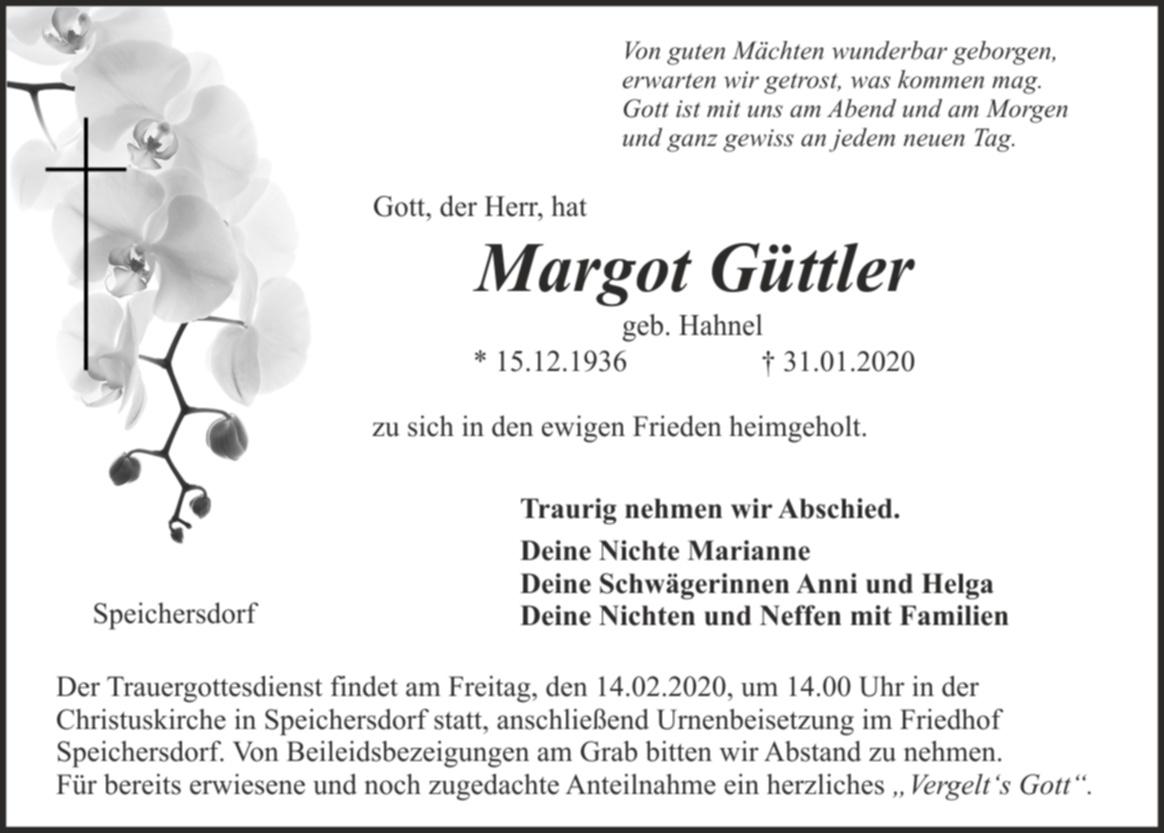 Der Trauergottesdienst findet am Freitag, den 14.02.2020, um 14.00 Uhr in der Christuskirche in Speichersdorf statt, anschließend Urnenbeisetzung im Friedhof Speichersdorf. Von Beileidsbezeigungen am Grab bitten wir Abstand zu nehmen.