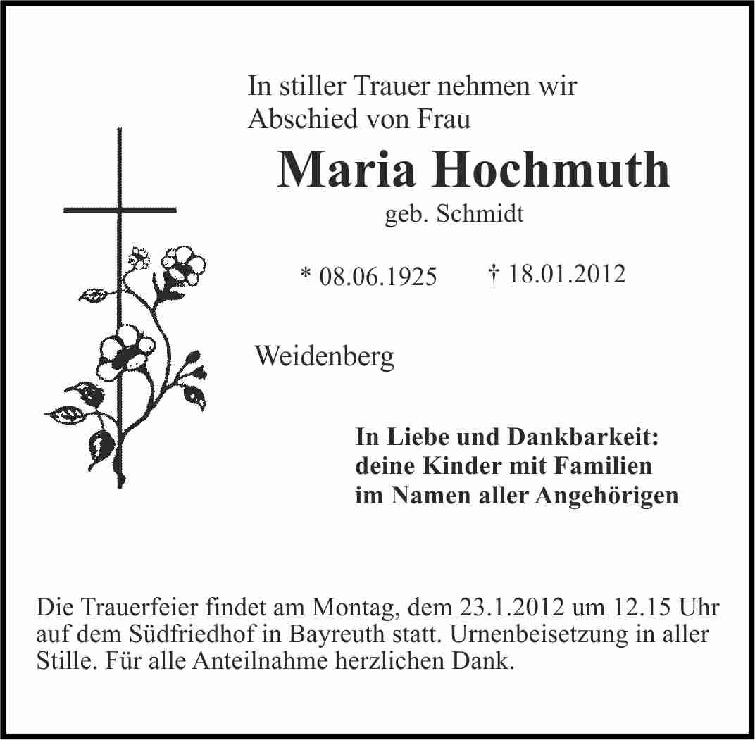 edhof in Bayreuth statt. Urnenbeisetzung in aller Stille. Für alle Anteilna