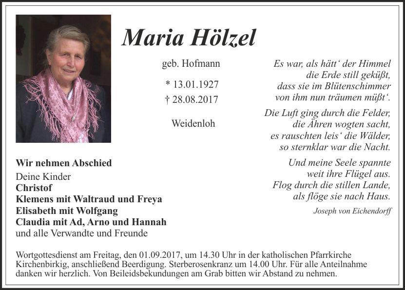 Wortgottesdienst am Freitag, den 01.09.2017, um 14.30 Uhr in der katholischen Pfarrkirche Kirchenbirkig, anschließend Beerdigung. Sterberosenkranz um 14.00 Uhr.