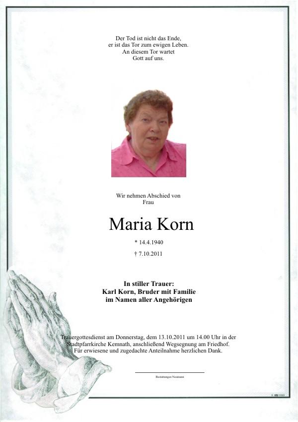 Der Trauergottesdienst findet am Donnerstag, 13.10.2011 um 14.00 Uhr in der Stadtpfarrkirche Kemnath statt, anschließend Verabschiedung auf dem Friedhof Kemnath.