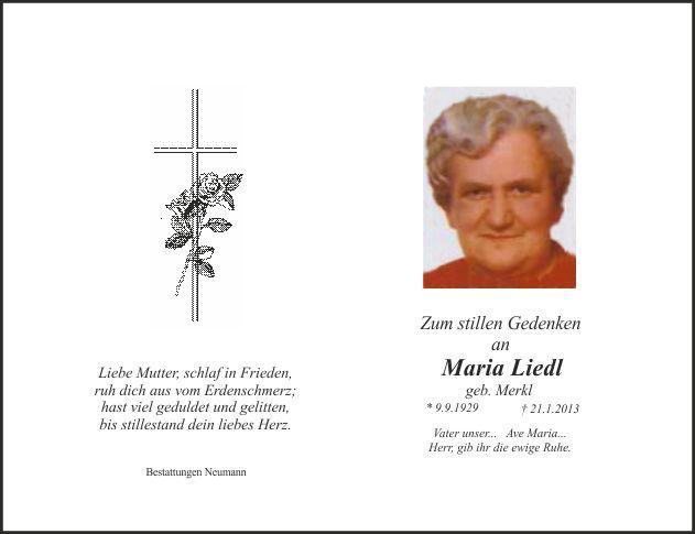 Der Tod von Frau Liedl hat mich sehr betroffen. Ich spreche Ihnen meine herzliche Anteilnahme aus. Ich werde sie als einen liebenswerten und gutmütigen Menschen in Erinnerung behalten.