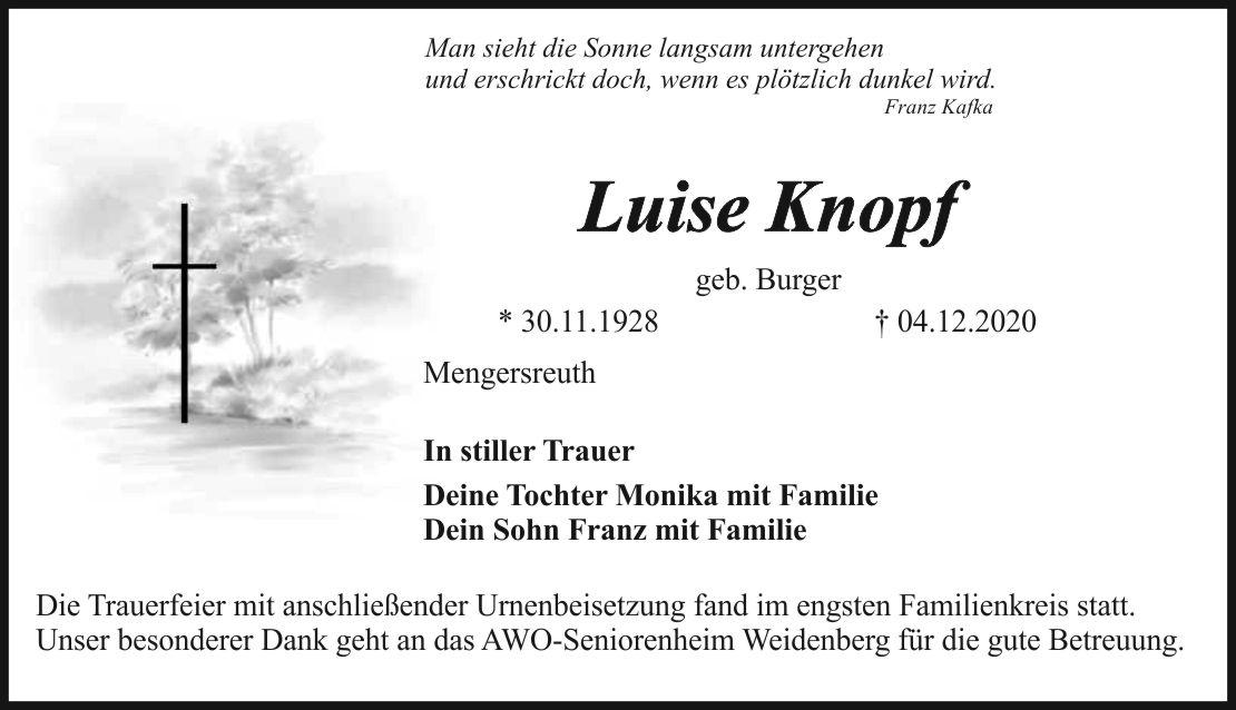 Die Trauerfeier mit anschließender Urnenbeisetzung fand im engsten Familienkreis statt. Unser besonderer Dank geht an das AWO-Seniorenheim Weidenberg für die gute Betreuung.