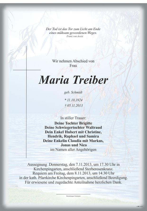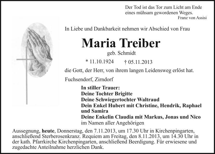 Aussegnung, heute, Donnerstag, den 7.11.2013, um 17.30 Uhr in Kirchenpingarten, anschließend Sterberosenkranz. Requiem am Freitag, den 8.11.2013, um 14.30 Uhr in der kath. Pfarrkirche Kirchenpingarten, anschließend Beerdigung. Für erwiesene und zugedachte Anteilnahme herzlichen Dank.