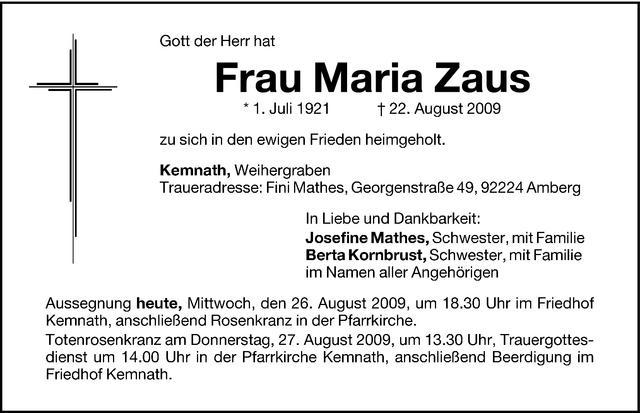 Sterberosenkranz am Donnerstag, dem 27.8.2009 um 13.30 Uhr in der Pfarrkirche Kemnath und um 14.00 Uhr Requiem, anschließend Beerdigung auf dem Friedhof Kemnath.