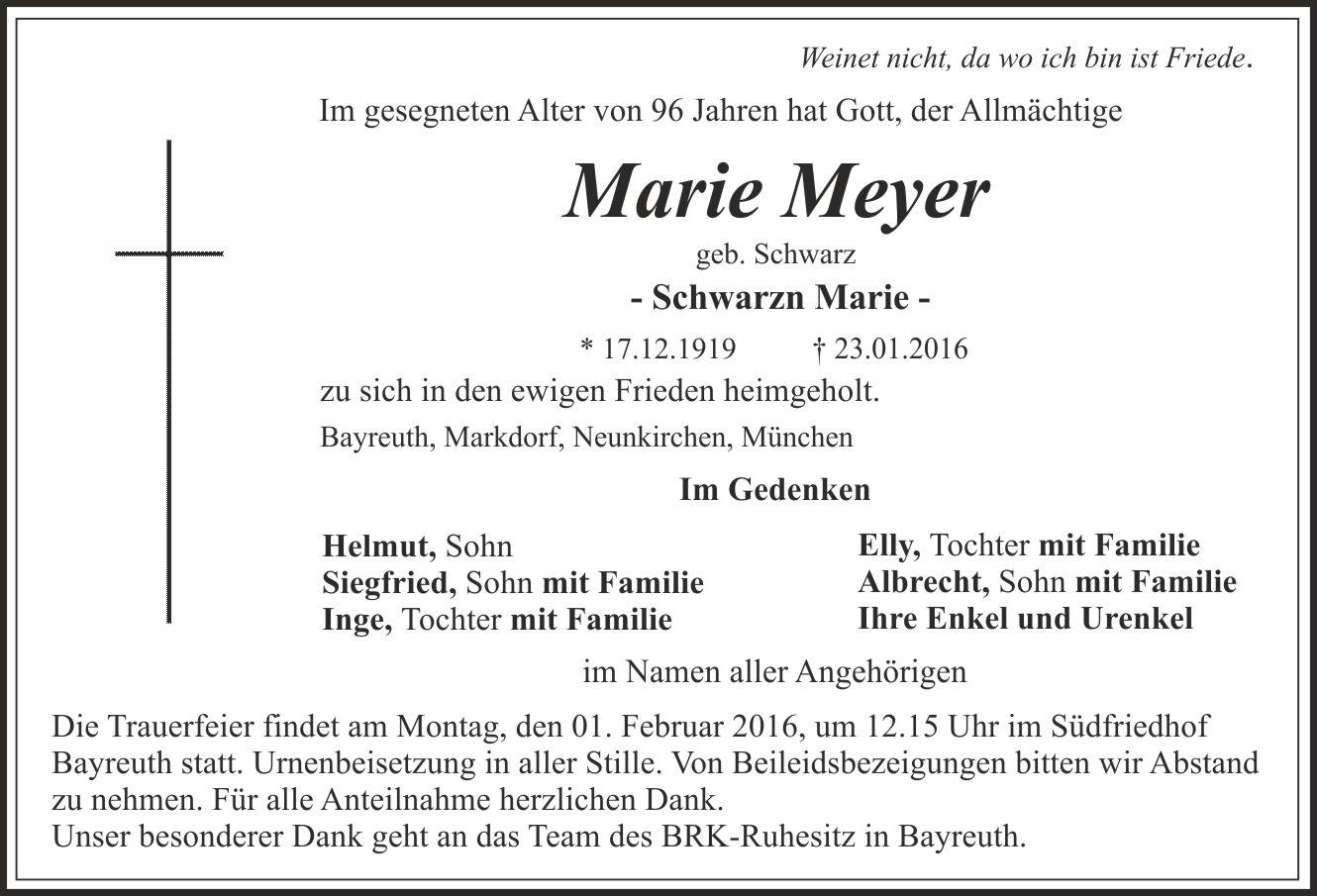 Der Trauergottesdienst findet am Montag, den 01.02.2016, um 12.15 Uhr im Südfriedhof Bayreuth statt. Für alle Anteilnahme herzlichen Dank.