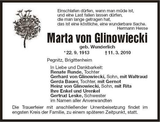 Liebe Oma!Danke für all die Jahre die Du mit uns gelebt hast.Ich vermisse die Gespräche mit Dir.Als ich noch ein Kleinkind war trocknetes Du meine Tränen,und gabst mir Trost und Geborgenheit.Die Jahre In Lüneburg,als Kind in den Sommerferien werde ich nie vergessen.Du warst immer wie eine gute Mutter zu mir,obwohl Du meine Oma warst.96 bist Du alt geworden.Schön das es Dich gab.Dein Körper starb,aber unsere Seelen sind unsterblich.Man sieht sich wieder.Dein Enkel aus Salzgitter.