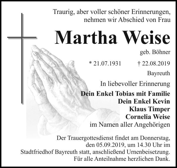 Stadtfriedhof Bayreuth statt, anschließend Urnenbeisetzung.