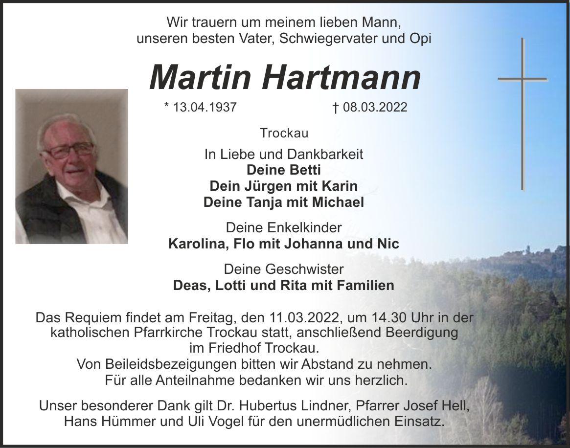 Das Requiem findet am Freitag, den 11.03.2022, um 14.30 Uhr in der katholischen Pfarrkirche Trockau statt, anschließend Beerdigung