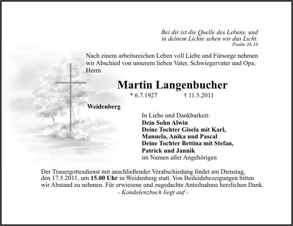 , den 17.5.2011 um 15.00 Uhr in Weidenberg statt. Von Beileidsbezeigungen bi