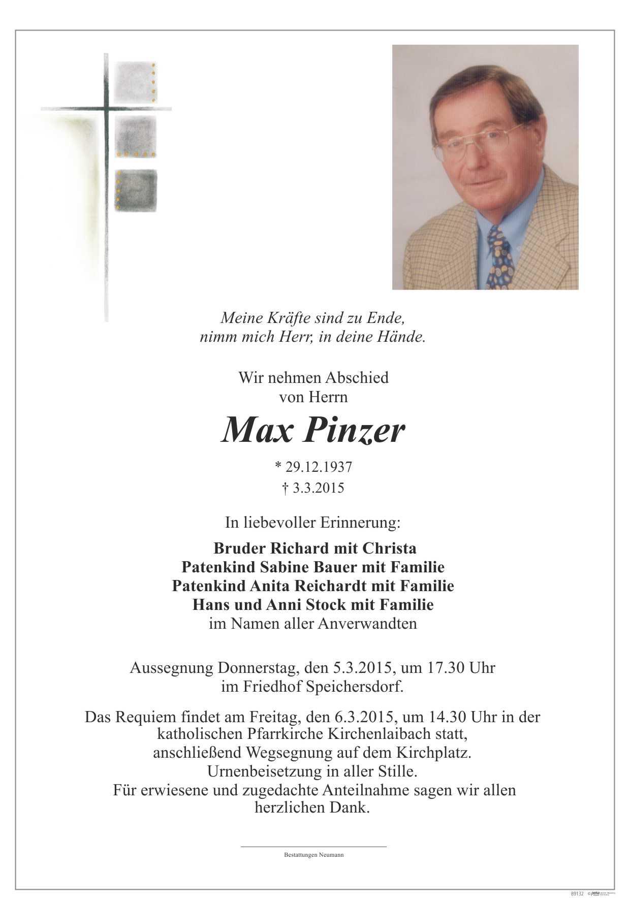 Max Pinzer. Für erwiesene und zugedachte Anteilnahme sagen wir allen herzlichen Dank.