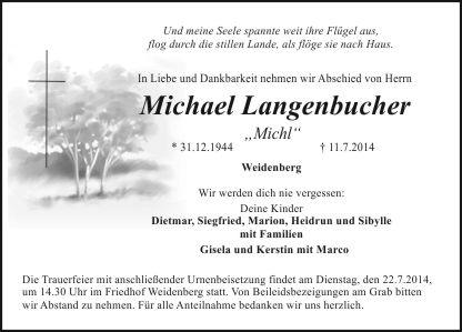 Die Trauerfeier mit anschließender Urnenbeisetzung findet am Dienstag, den 22.7.2014,