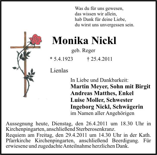 Die Beisetzung findet am Freitag, 29.04.2011 um 14:30 Uhr auf dem Friedhof in Kirchenpingarten statt.