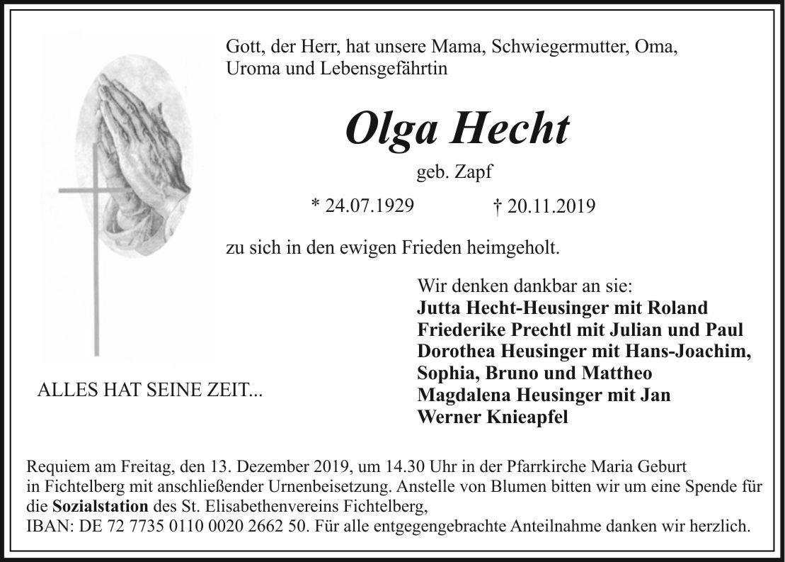 in Fichtelberg mit anschließender Urnenbeisetzung. Anstelle von Blumen bitten wir um eine Spende für die Sozialstation des St. Elisabethenvereins Fichtelberg,