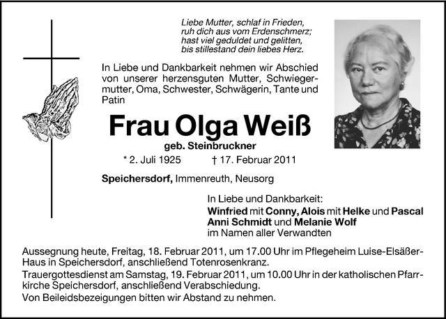Die Beisetzung findet auf dem Friedhof in Friedhof in Immenreuth statt.