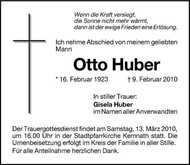 Das Requiem findet am Samtag, den 13.3.2010 um 16.00 Uhr in der Stadtpfarrkirche Kemnath statt. Die Urnenbeisetzung erfolgt in aller Stille.