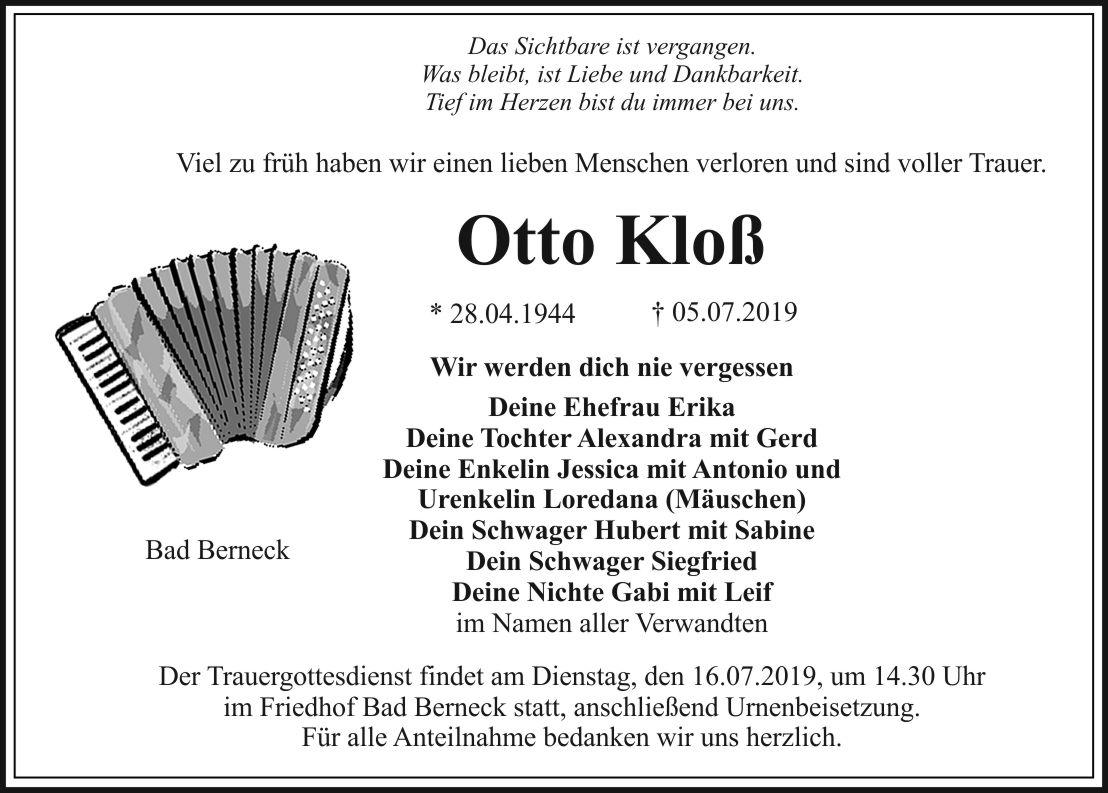 Der Trauergottesdienst findet am Dienstag, den 16.07.2019, um 14.30 Uhr