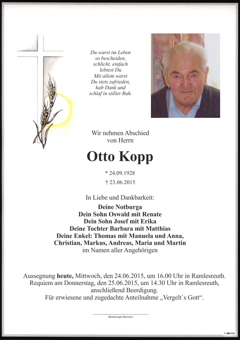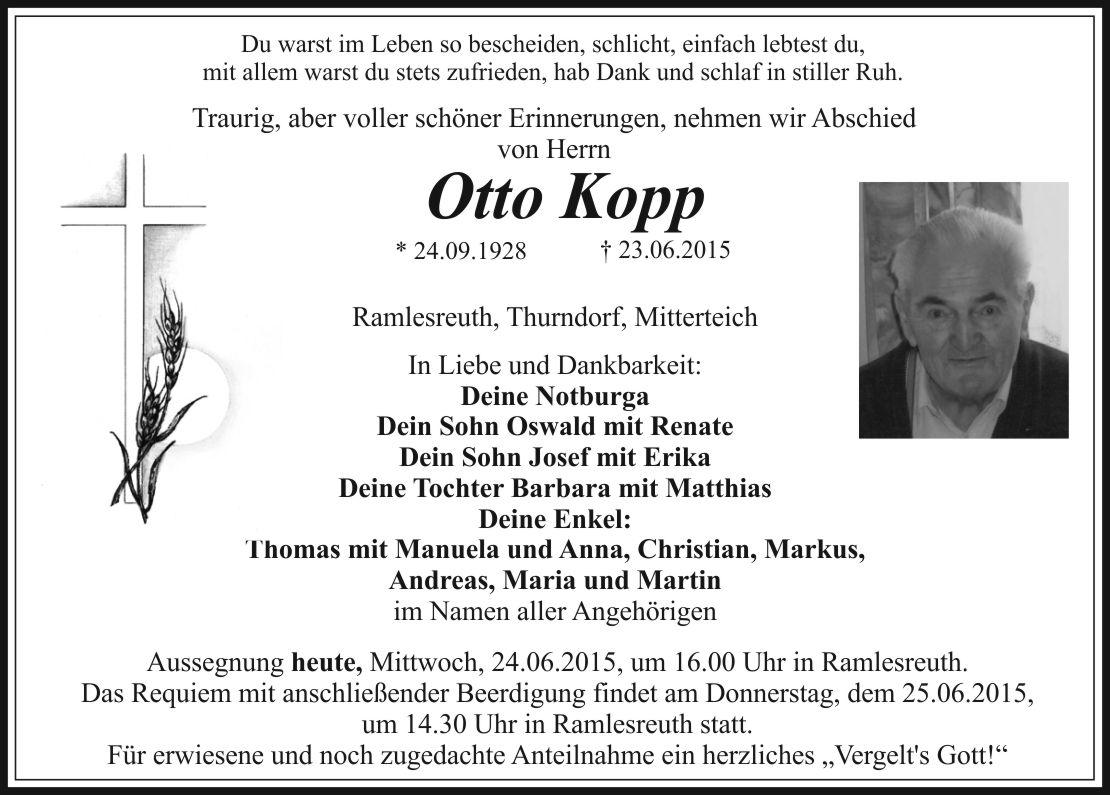 Das Requiem mit anschließender Beerdigung findet am Donnerstag, dem 25.06.2015, um 14.30 Uhr in Ramlesreuth statt.
