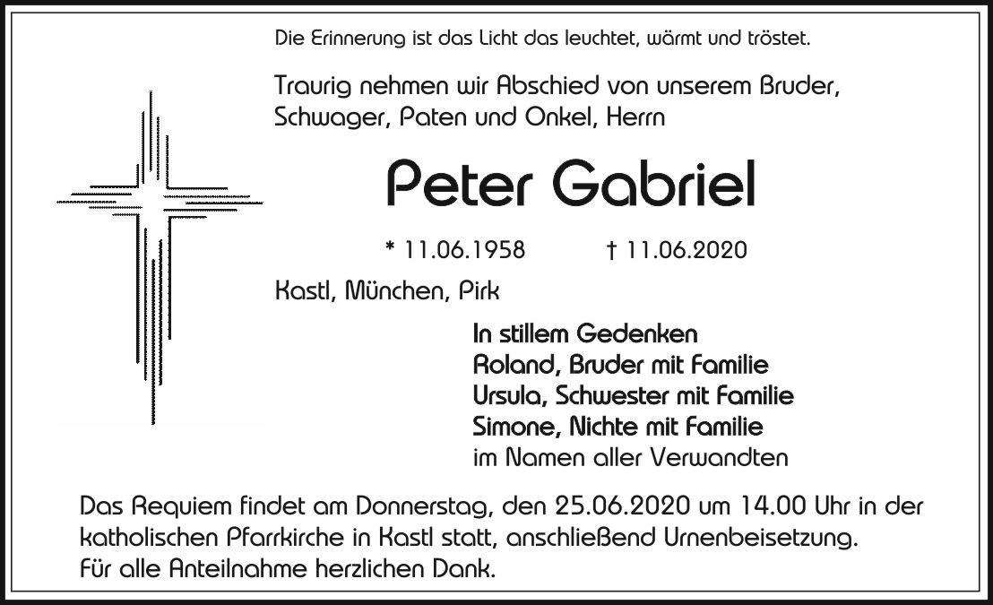 Das Requiem findet am Donnerstag, den 25.06.2020 um 14.00 Uhr in der katholischen Pfarrkirche in Kastl statt, anschließend Urnenbeisetzung.