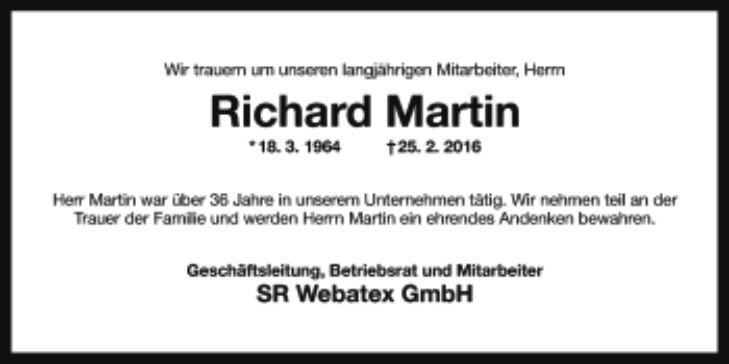 Der Trauergottesdienst findet am Donnerstag, dem 03.03.2016