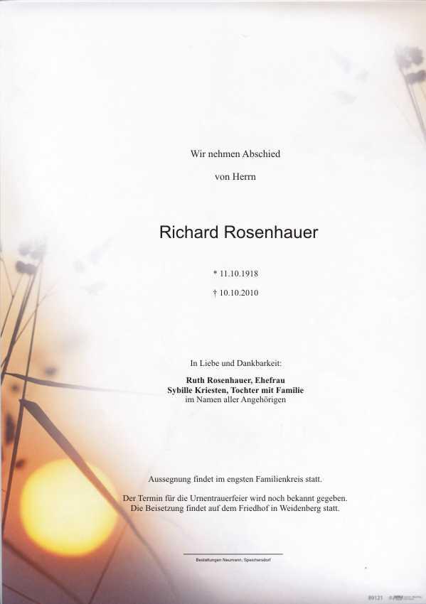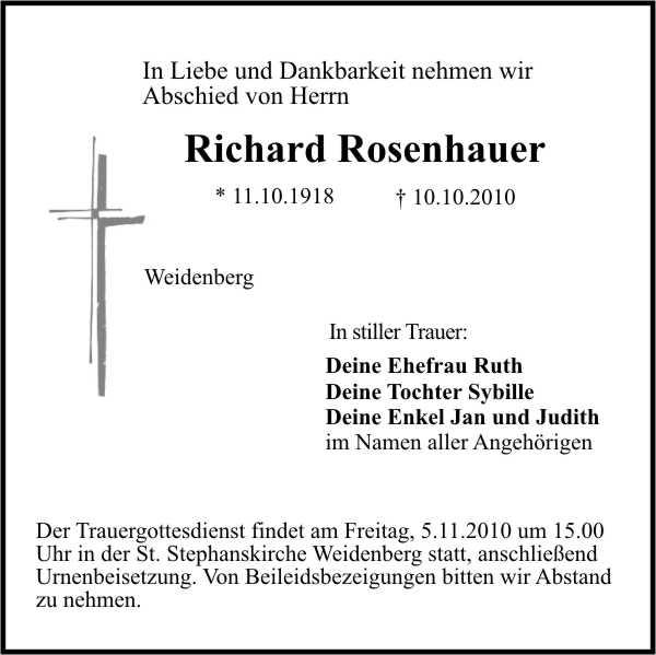 Die Beisetzung findet am Freitag, 05.11.2010 um 15:00 Uhr auf dem Friedhof in Weidenberg statt.