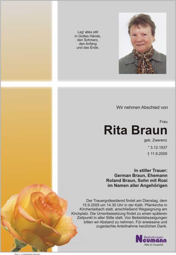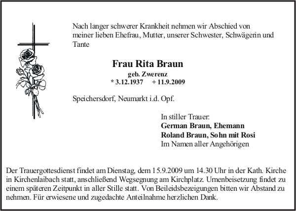 Die Trauerfeier findet am Dienstag, dem 15.9.2009 um 14.30 Uhr statt.