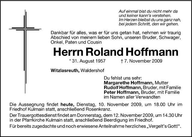 Am Donnerstag, 12.11.2009 um 14.30 Uhr Trauergottesdienst in der Pfarrkirche Kulmain, anschließend Beerdigung auf dem Friedhof.
