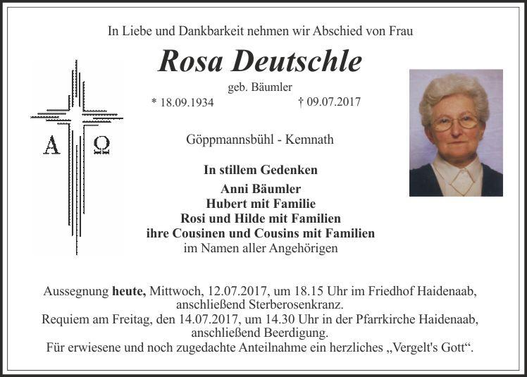 Aussegnung heute, Mittwoch, 12.07.2017, um 18.15 Uhr im Friedhof Haidenaab,