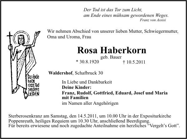 Die Beisetzung findet am Samstag, 14.05.2011 um 10:30 Uhr auf dem Friedhof in Poppenreuth statt.
