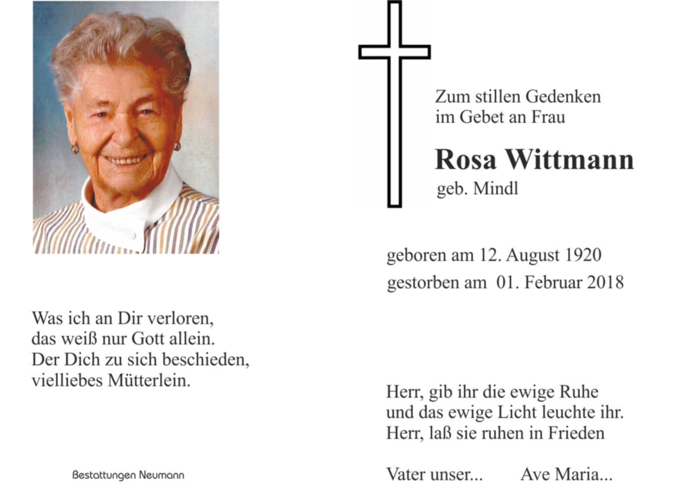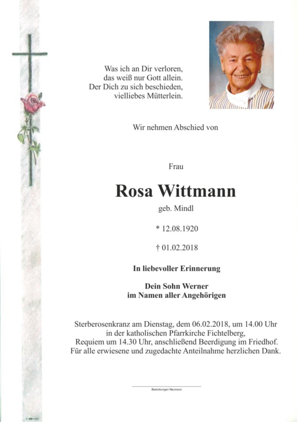Sterberosenkranz am Dienstag, den 06.02.2018, um 14.00 Uhr in der katholischen Pfarrkirche Fichtelberg, anschließend um 14.30 Uhr Requiem und Beerdigung. Für alle Anteilnahme herzlichen Dank.