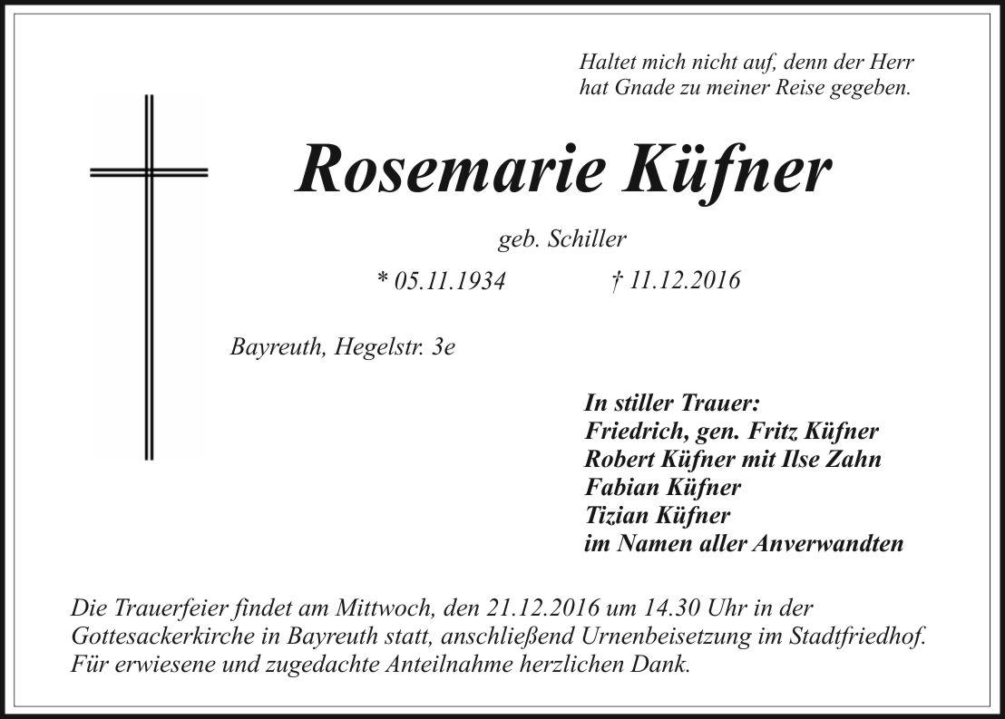 Gottesackerkirche in Bayreuth statt, anschließend Urnenbeisetzung im Stadtfriedhof.
