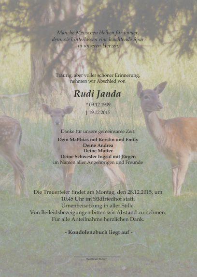 Die Trauerfeier findet am Montag, den 28.12.2015,