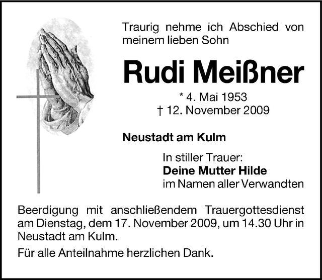 Die Beisetzung findet am Dienstag, 17.11.2009 um 14:30 Uhr auf dem Friedhof in Neustadt am Kulm statt.