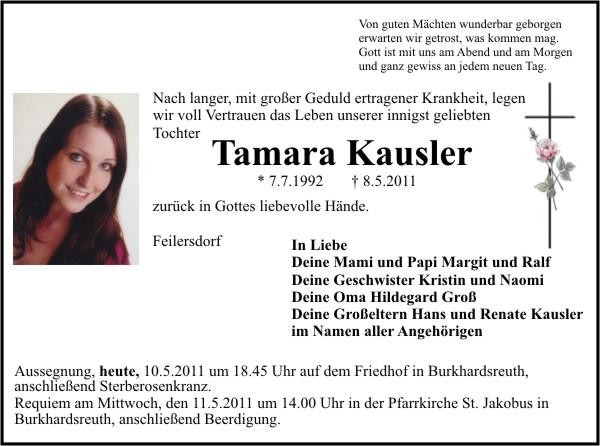 Die Beisetzung findet am Mittwoch, 11.05.2011 um 14:00 Uhr auf dem Friedhof in Burkhardsreuth statt.