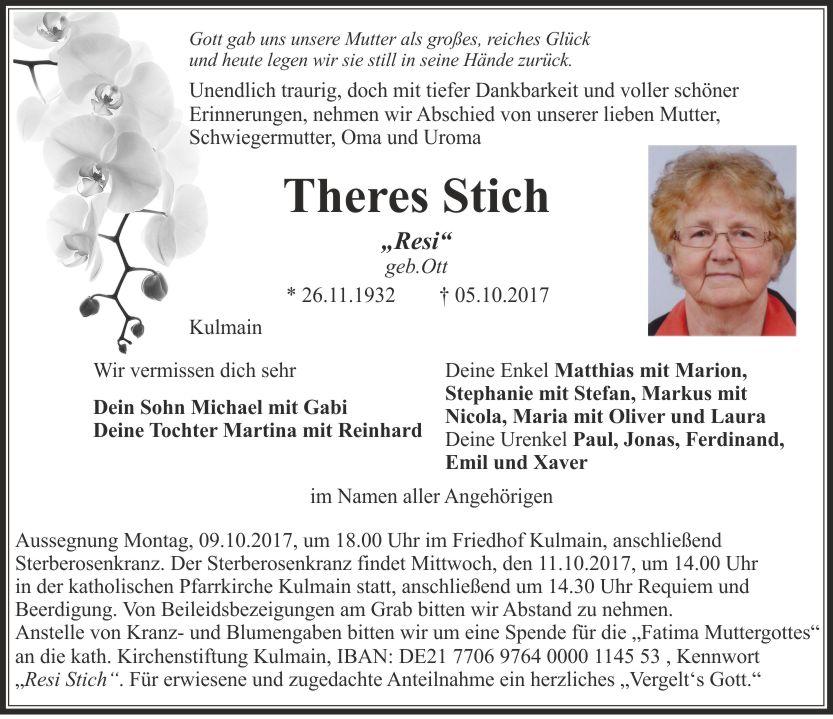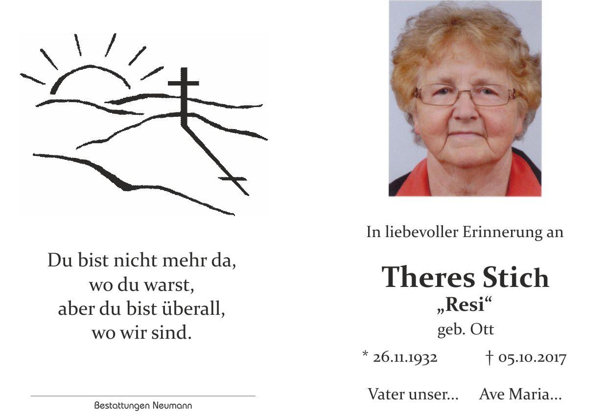 „Resi Stich“. Für erwiesene und zugedachte Anteilnahme ein herzliches „Vergelt‘s Gott.“