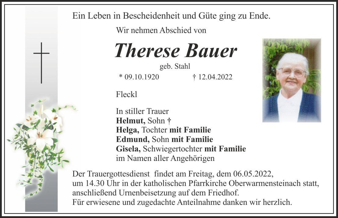 um 14.30 Uhr in der katholischen Pfarrkirche Oberwarmensteinach statt, anschließend Urnenbeisetzung auf dem Friedhof.