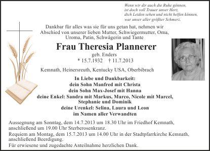 Aussegnung am Sonntag, dem 14.7.2013 um 18.30 Uhr im Friedhof Kemnath, anschließend um 19.00 Uhr Sterberosenkranz.