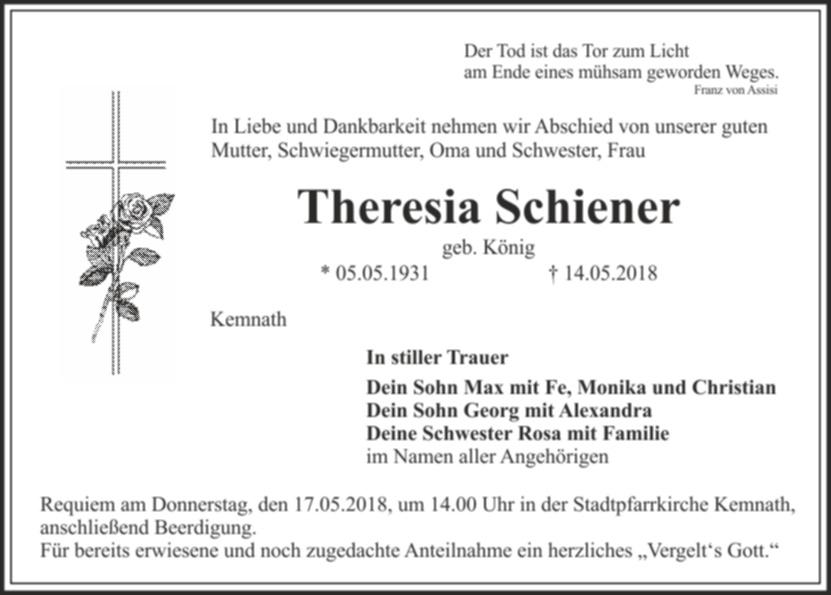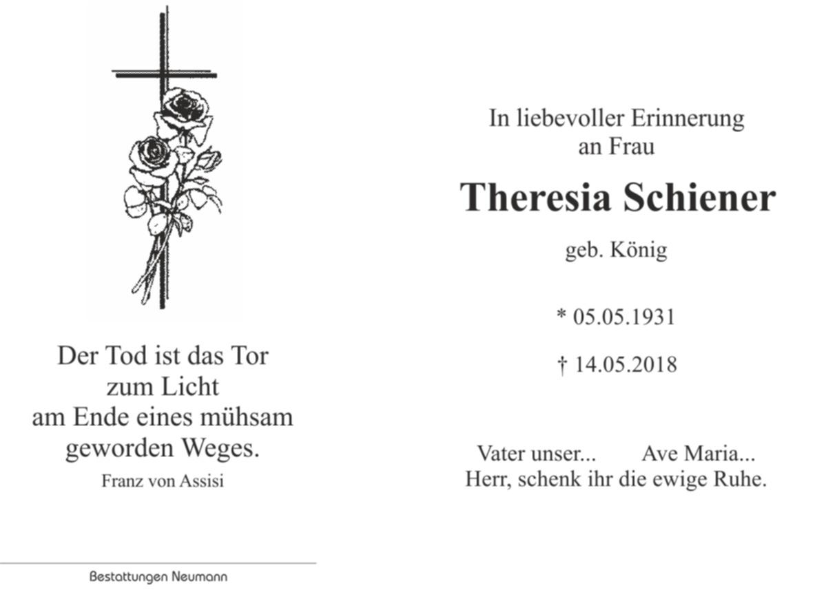 Requiem am Donnerstag, den 17.05.2018, um 14.00 Uhr in der Stadtpfarrkirche Kemnath, anschließend Beerdigung.