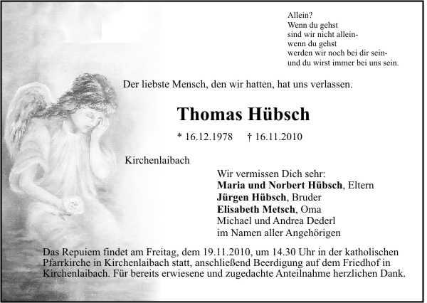 Die Beisetzung findet am Freitag, 19.11.2010 um 00:00 Uhr auf dem Friedhof in Kirchenlaibach statt.