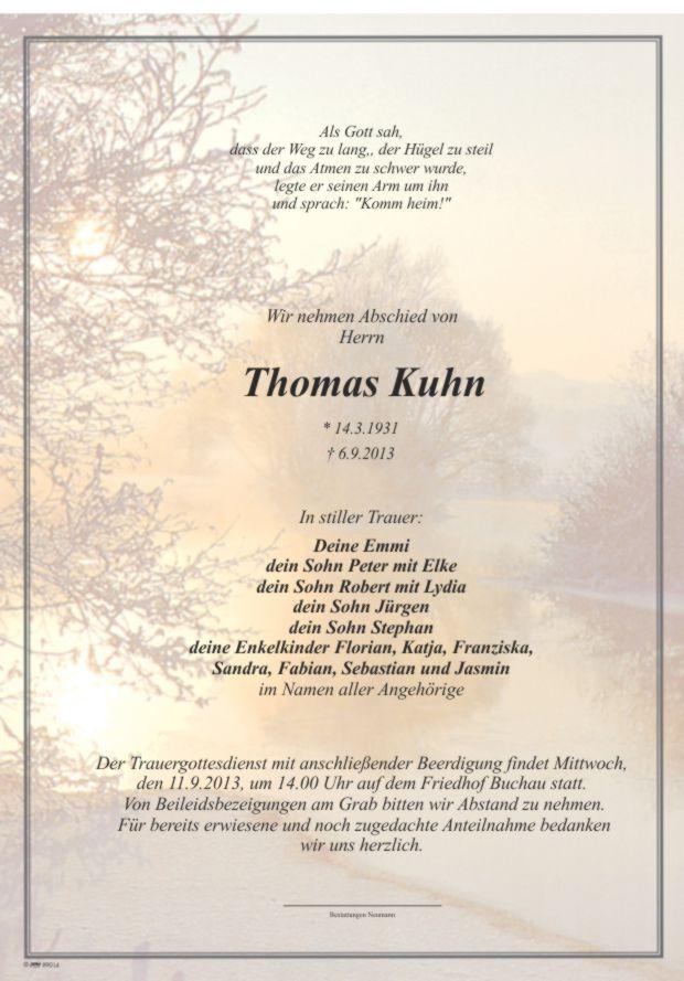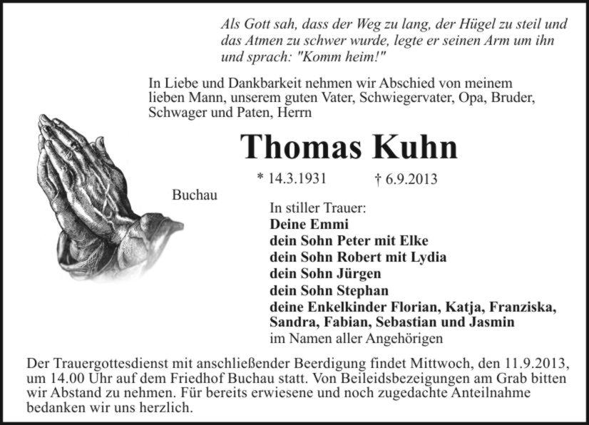 Der Trauergottesdienst mit anschließender Beerdigung findet Mittwoch, den 11.9.2013, um 14.00 Uhr auf dem Friedhof Buchau statt. Von Beileidsbezeigungen am Grab bitten wir Abstand zu nehmen. Für bereits erwiesene und noch zugedachte Anteilnahme bedanken wir uns herzlich.