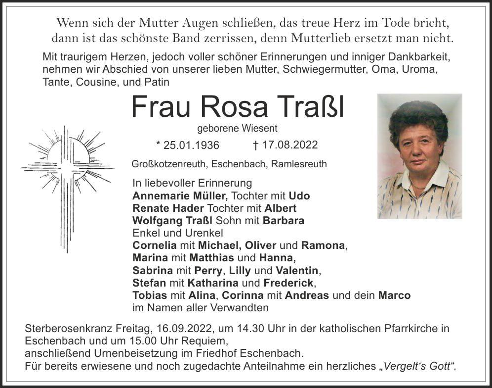 Sterberosenkranz Freitag, 16.09.2022, um 14.30 Uhr in der katholischen Pfarrkirche in Eschenbach und um 15.00 Uhr Requiem,