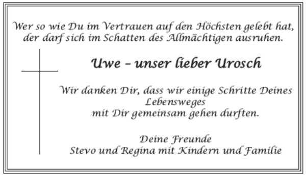 Mit großer Betroffenheit las ich soeben die Traueranzeige von Uwe in der Zeitung…