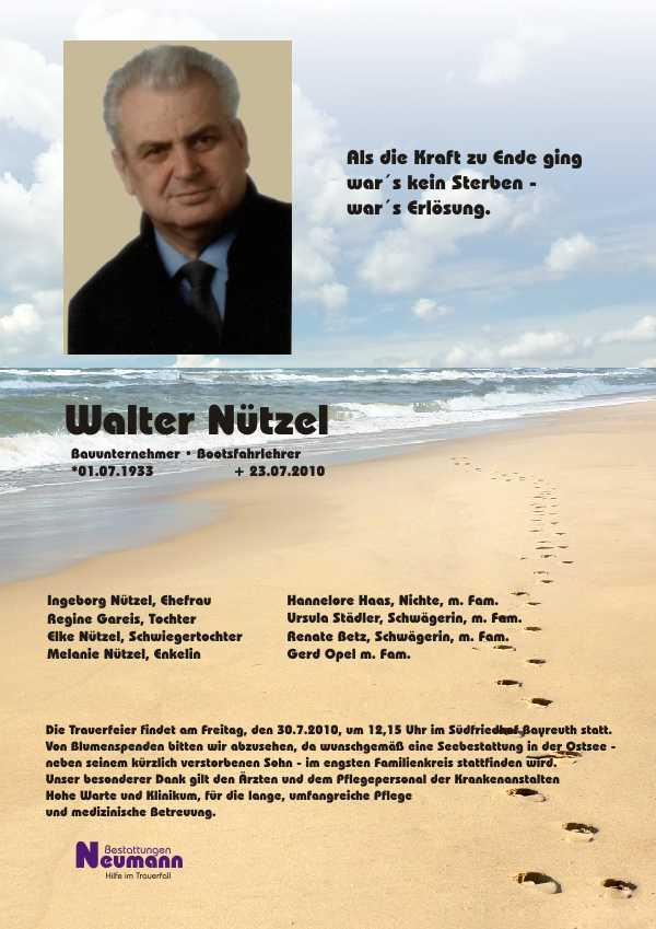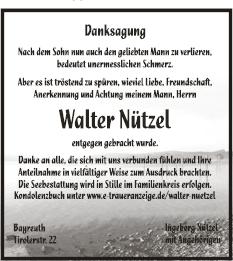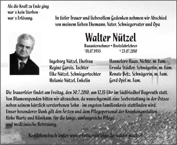Die Trauerfeier findet am 30.7.2010 um 12.15 Uhr auf dem Südfriedhof in Bayreuth statt.