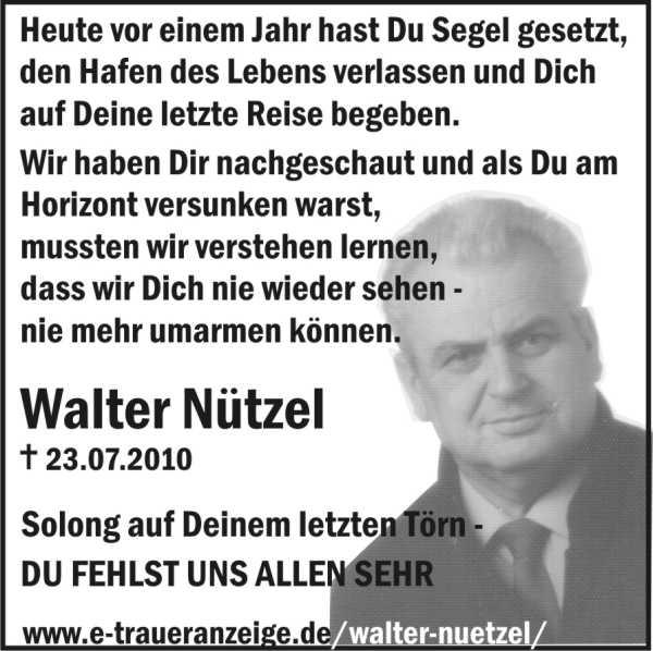 wir haben gestern beim Nordic-Walking von Walters Tod erfahren, deshalb wollen wir auf diesem Wege unser tiefstes Mitgefühl ausdrücken.Wir fühlen mit Euch.