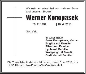 Der Trauergottesdienst mit anschließender Wegsegnung findet am Mittwoch, 13.4.2011 um 14.30 Uhr in Creußen statt.