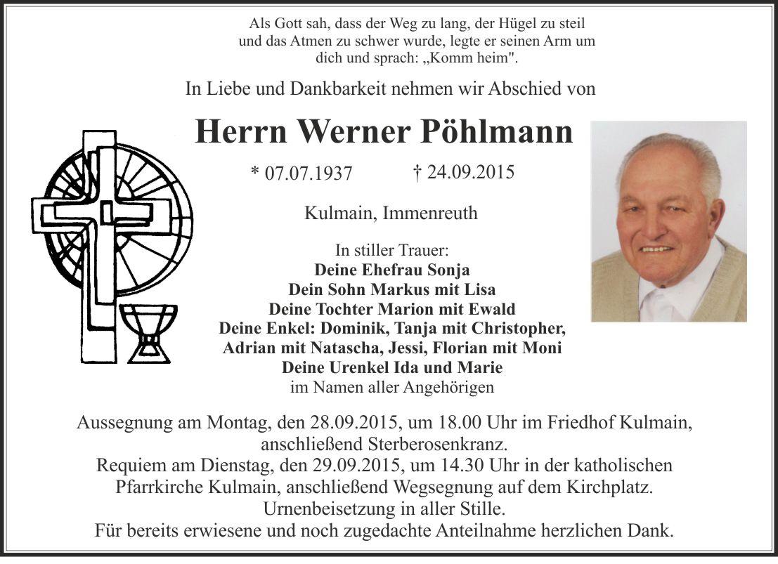Aussegnung am Montag, den 28.09.2015, um 18.00 Uhr im Friedhof Kulmain,