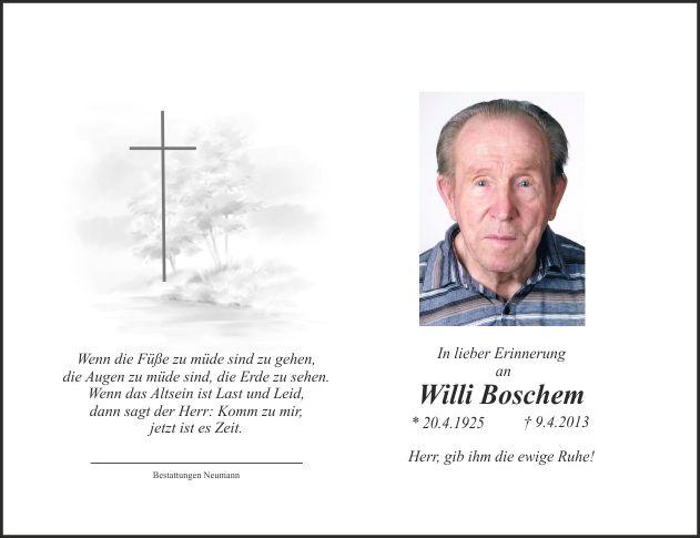 Ich bin der Sohn von Bernhard Boschem. Mein Vater ist auch vor Jahren verstorben.